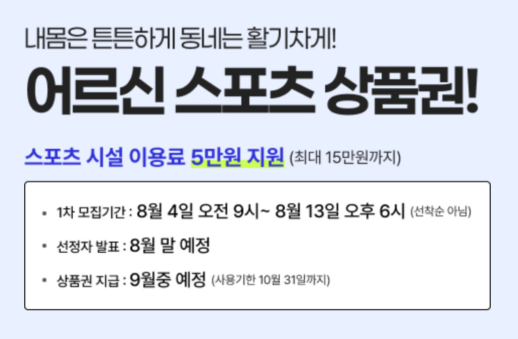 고령화 사회로 접어들면서 어르신들의 건강하고 활기찬 노후를 지원하는 정책들이 중요해지고 있습니다. ‘어르신 스포츠 상품권’은 최대 15만원을 지원해주며 1차 모집이 시작되었습니다. 이 글에서는 어르신 스포츠 상품권 정책에 대해 쉽고 자세하게 알아보겠습니다.