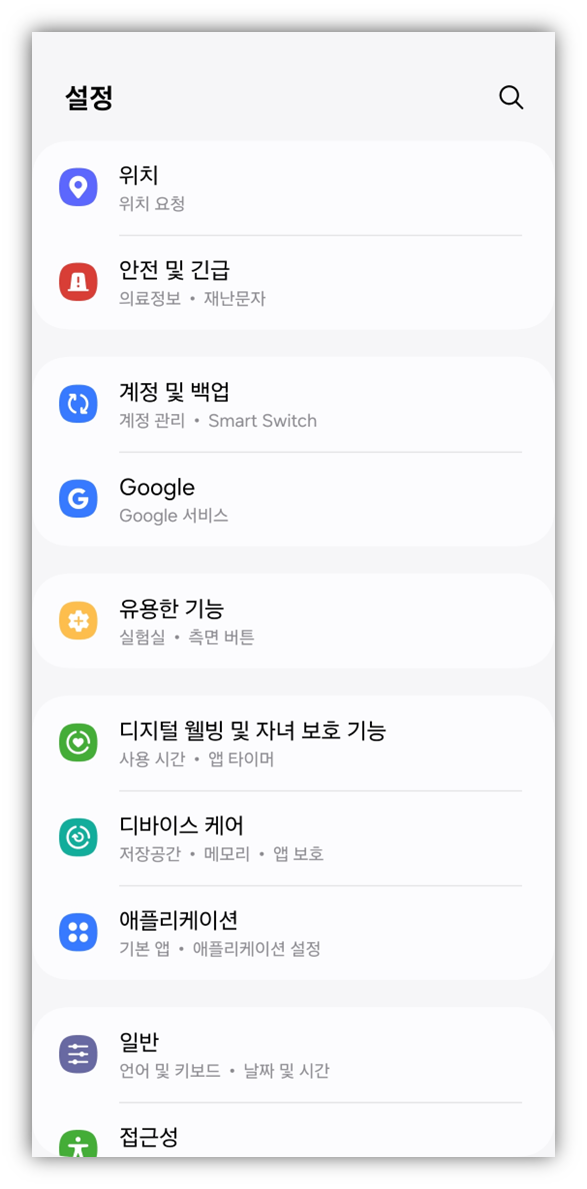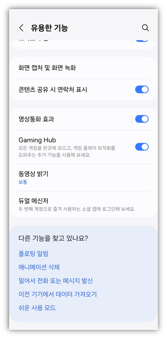 1. 설정에서 유용한 기능을 클릭합니다.