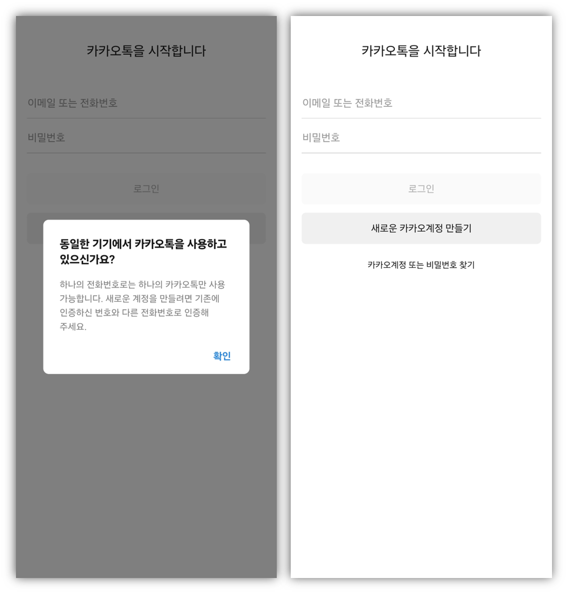 5. 설치된 듀얼메신저 카카오톡에서 새로운 카카오계정 만들기를 선택합니다.
