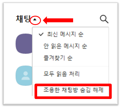 조용한 채팅방 숨기기 (숨기기 해제 방법)