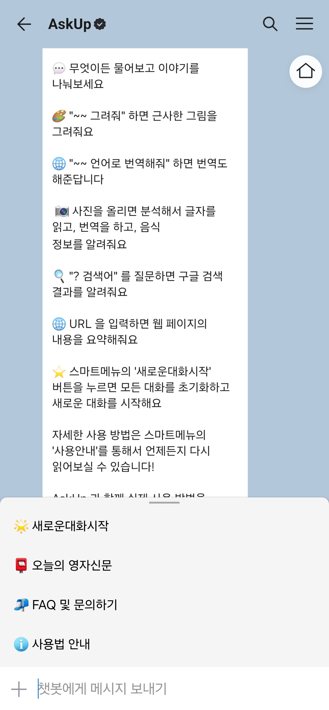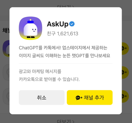 카카오톡에도 챗gpt 기능을 사용할 수 있는 아숙업(AskUP)이 출시되었습니다. 챗gpt에서는 한글 지원이 안돼서 시간도 오래걸리고 불편한 점이 있었는데요. 아숙업에서는 한글 지원이 되고 다양한 기능도 있어서 쓸만한 오픈 AI라고 생각해요. askup 설치 방법과 사용방법에 대해 알아보겠습니다.